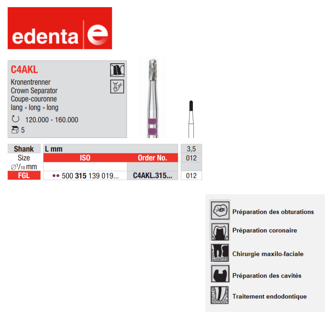 Fraise en carburateur de tungstène conçue pour la découpe efficace des couronnes métalliques, des alliages, du titane et des matériaux cosmétiques en céramique à basse fusion ou en composite.