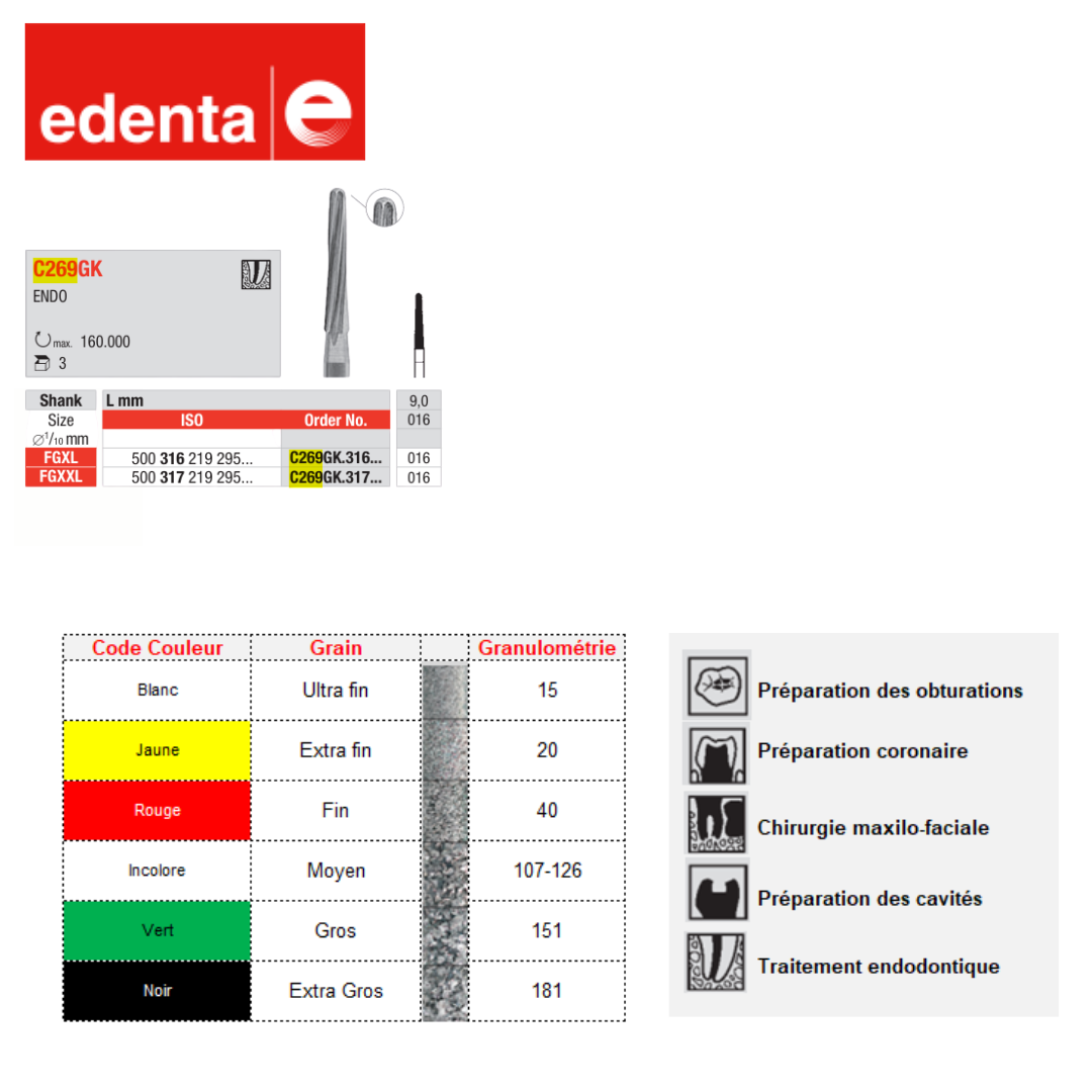La Fraise d’endodontie C269GK est optimale pour l’ouverture évasée des chambres pulpaires.