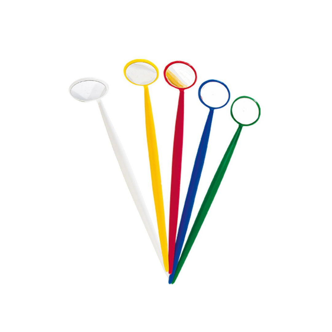 Sachet de miroirs à usage unique avec manche en plastique. Ces miroirs ne sont pas compatibles avec la stérilisation en autoclave.