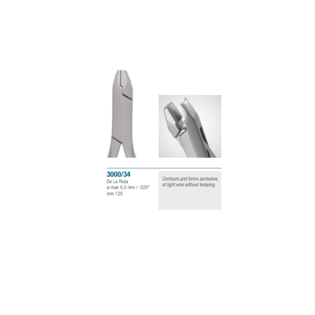 La pince de La Rosa est un instrument conçu pour plier et former des crochets (hooks) directement sur les arcs orthodontiques.
